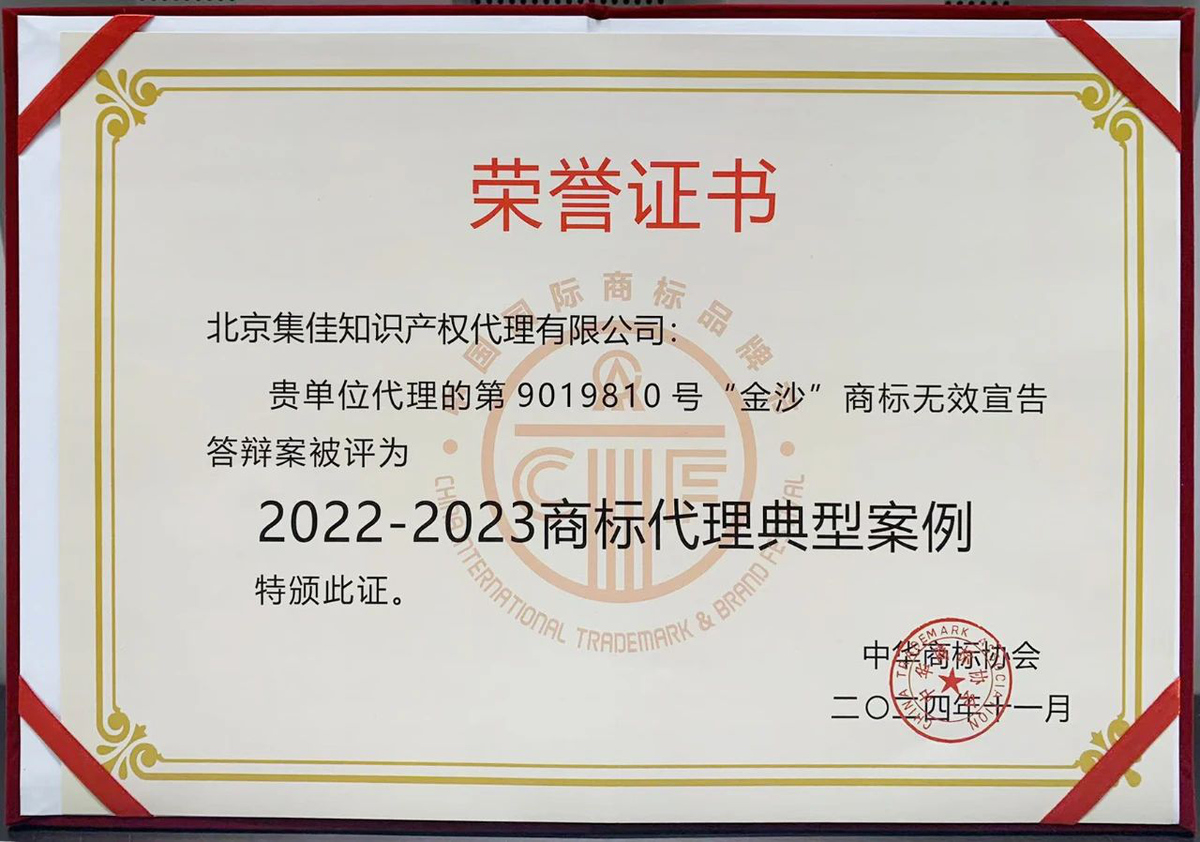集佳代理的“金沙”商标权无效宣告答辩案入选“2022-2023商标代理典型案例”